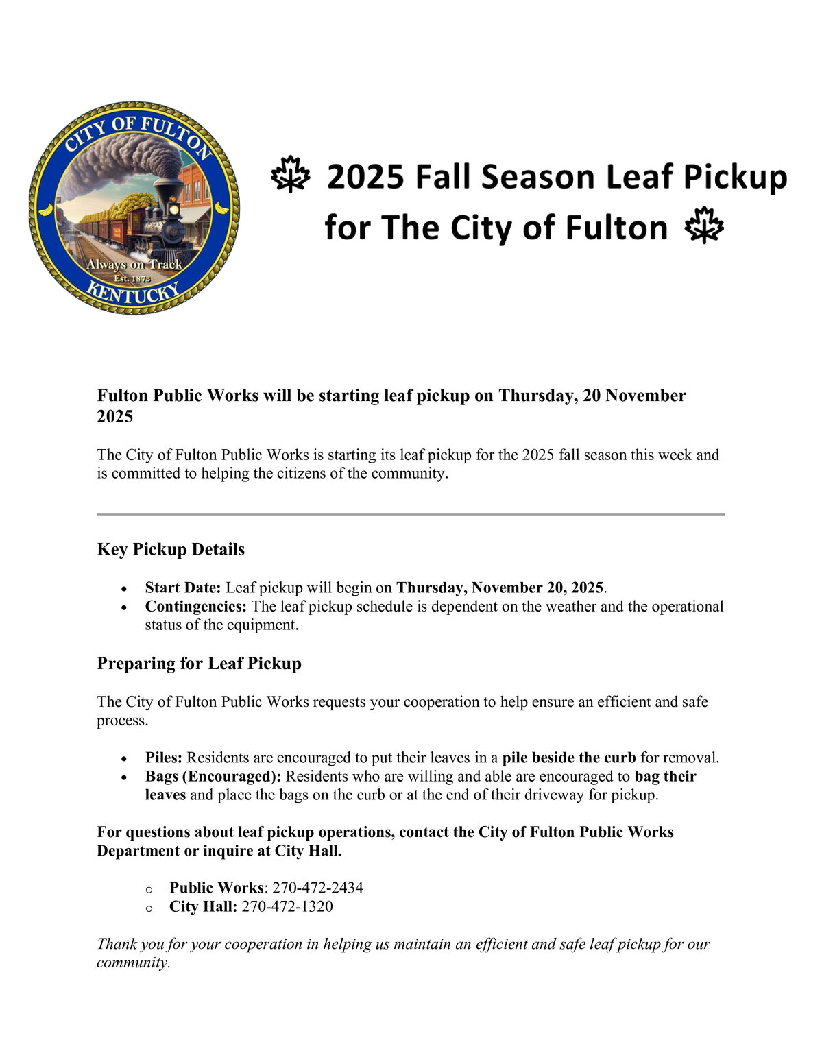 Leaf Pickup Schedule